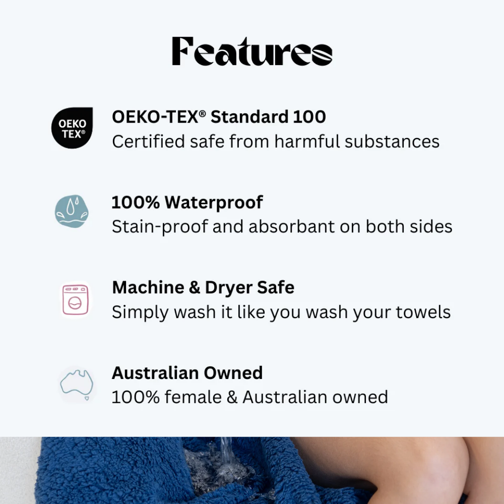 Each blanket is 100% waterproof, double-sided and absorbent.