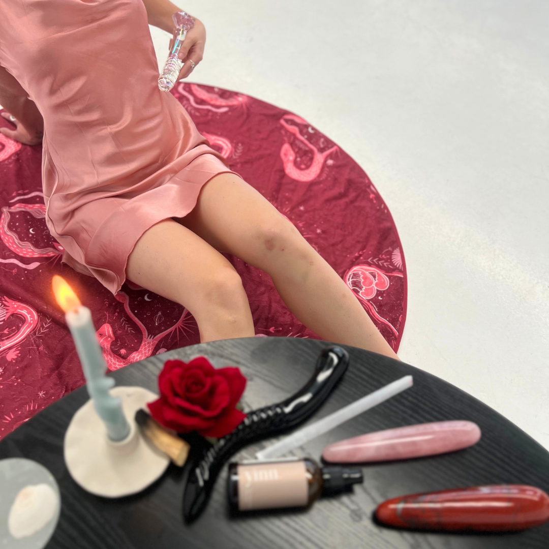 The NEW "Round Shape" enhances your sacred space, perfect for lighting candles, buying roses, and embracing your divine feminine energy with your favourite pleasure wand. Celebrate your power and honour your rituals with the Womb Free Bleeding Blanket.