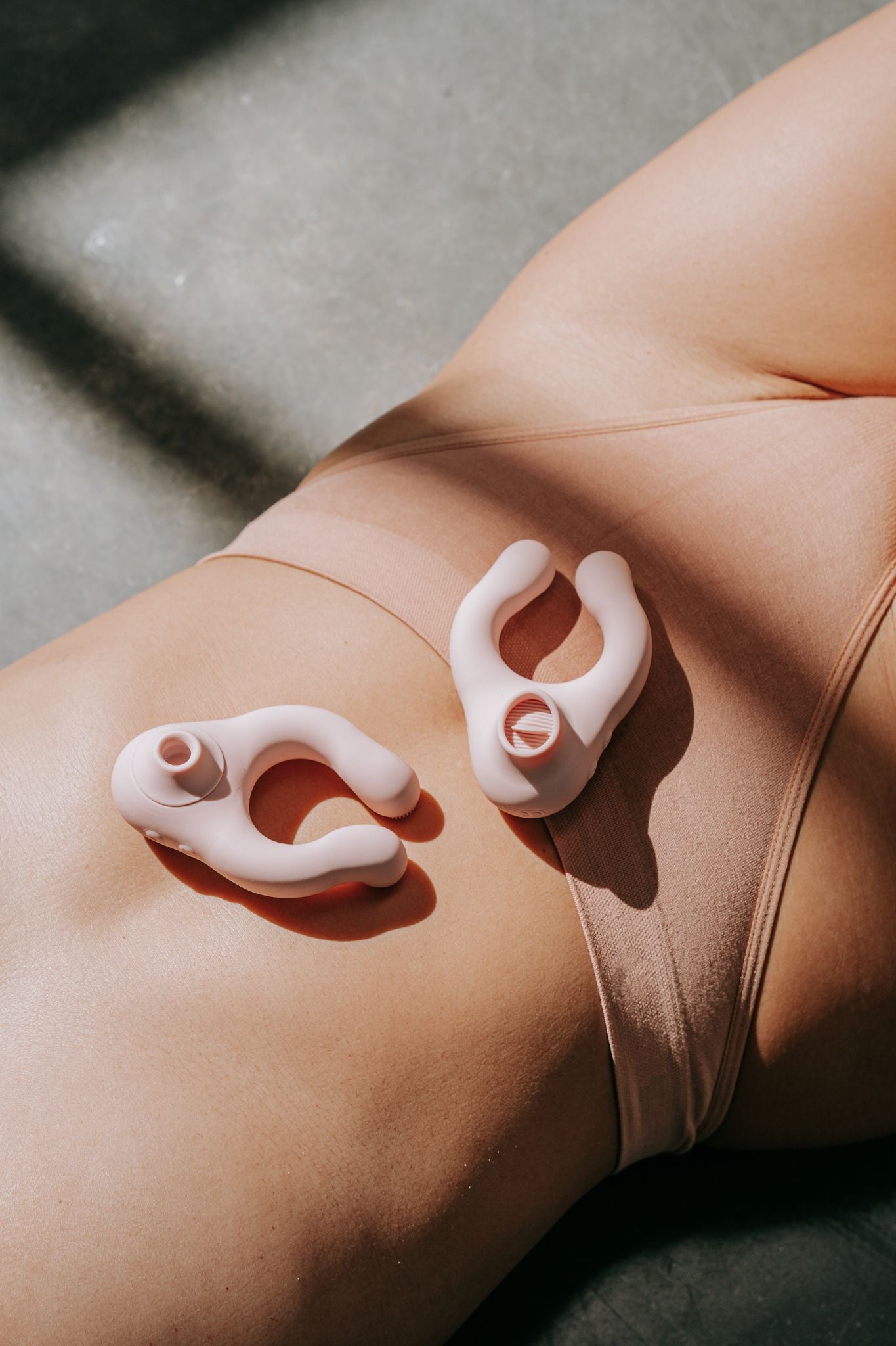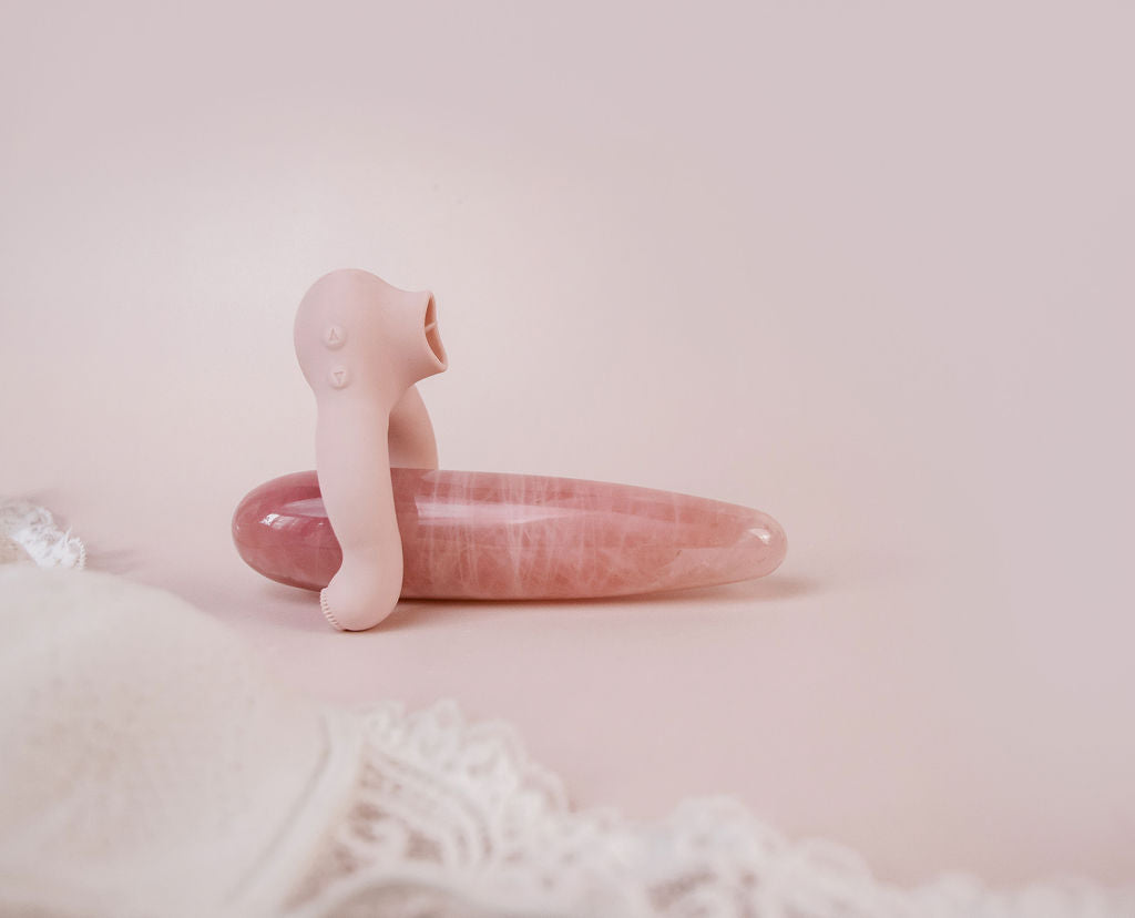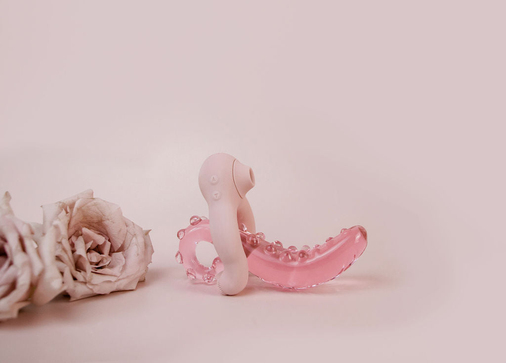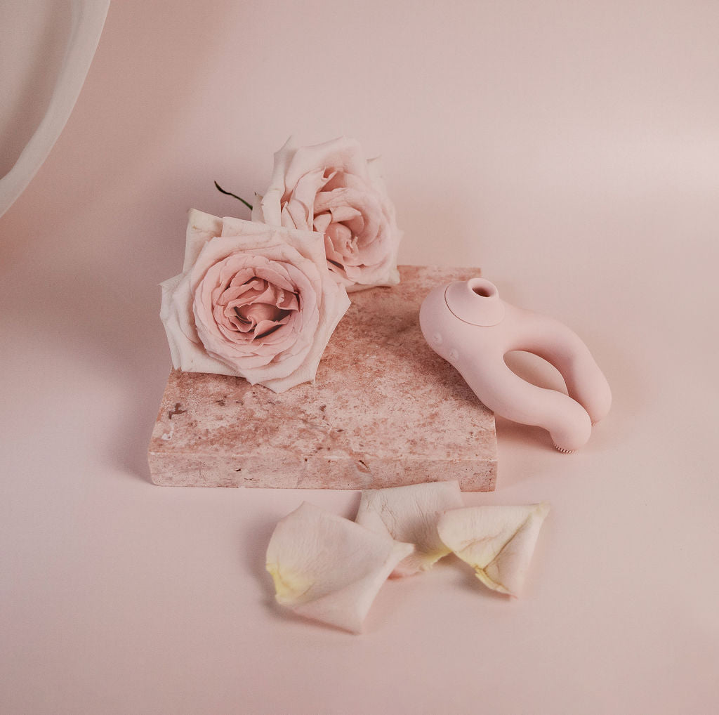 Designed to wrap around a penis, pleasure wand, dildo or strap-on, the Flick stimulates the clitoris in a tongue-flicking fashion and the Suki stimulates the clitoris tongue-sucking fashion.